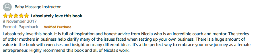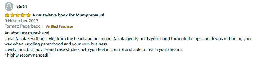 “Nicola has written the essential handbook that every Mumpreneur should read. Inspiring, insightful and packed full of strategies to help us all achieve our dreams.” Jo Davison, founder of Blue Cow Global