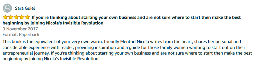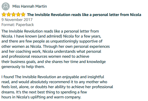 “The Invisible Revolution is a truly inspiring read - full of practical tools, resources, insight and examples to help you on your Mumpreneur journey.” Lucy Griffin-Stiff, founder of Starting Conversations